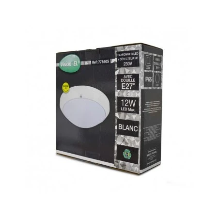 Plafonnier LED Hublot Ø300 E27 blanc IP65 + détecteur