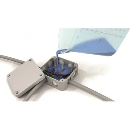 La Résine de silicone bicomposant réaccessible est une résine de silicone bicomposant utilisée pour le remplissage et l’isolation des boites en dérivation et boites de jonction basse tension.