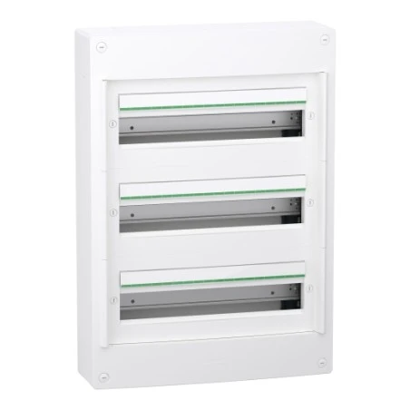 - Équipements fournis : 3 étiquettes d’identification, 3 protections d’étiquette, 3 borniers, 1 bande d’obturateur, 1 porte à commander séparément, 3 rails DIN, 1 plaque arrière