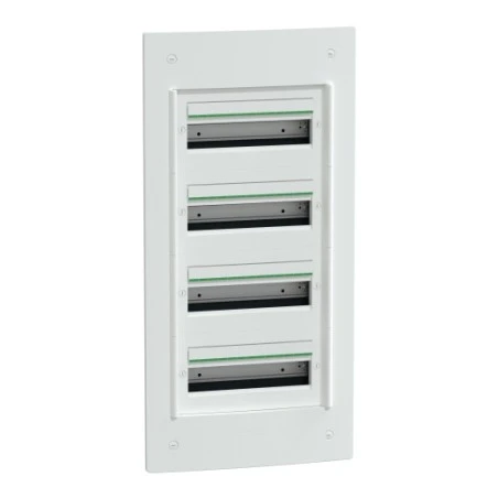 - Équipements fournis : 4 étiquettes d’identification, 4 protections d’étiquette, 3 borniers, 1 bande d’obturateur, 1 porte à commander séparément, 4 rails DIN, 1 plaque arrière